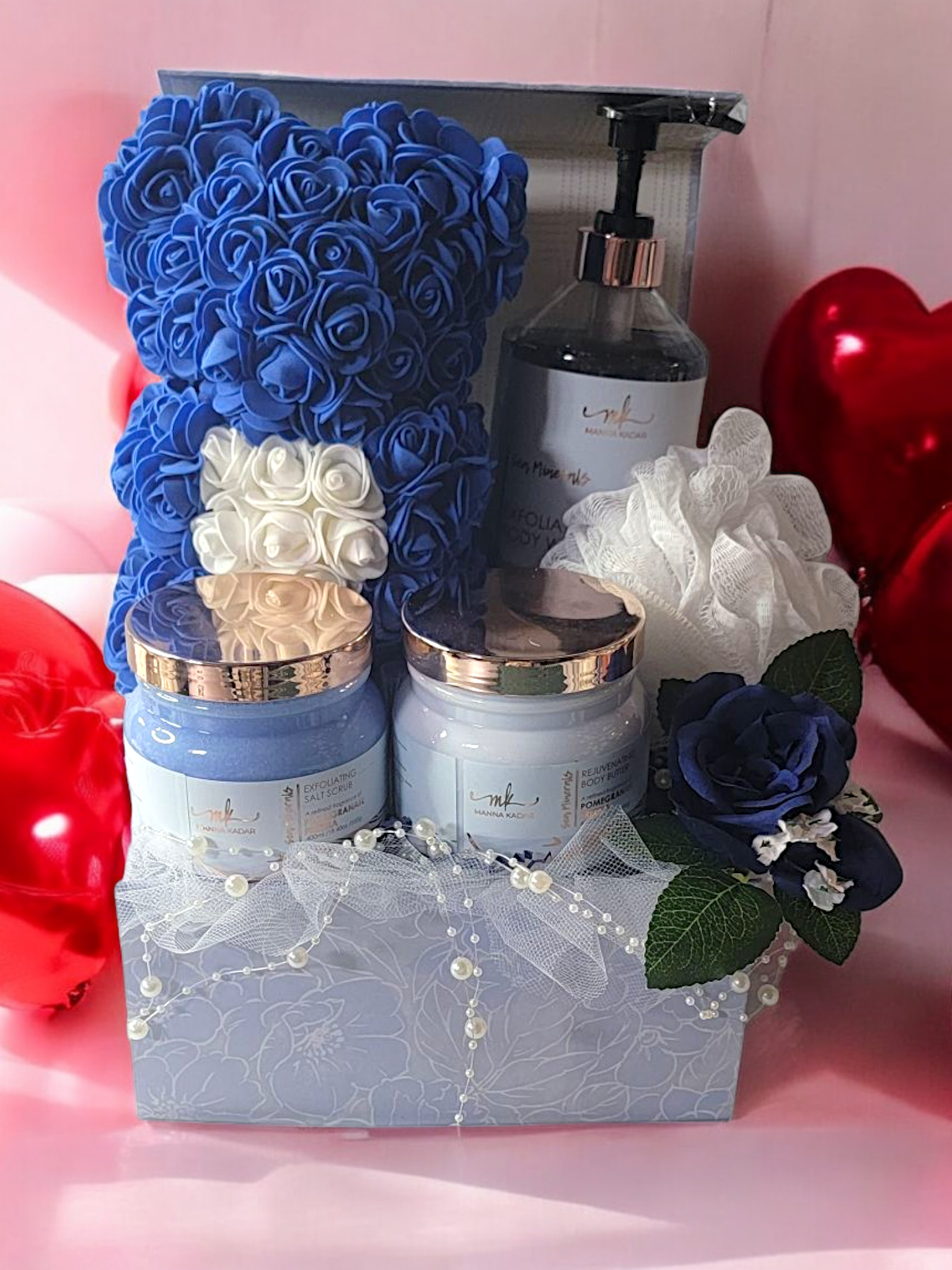 MEDIUM GIFT STORAGE BOX, MEDIUM ROSE BEAR, MK AND LOOFAH 3PCS BATH SET