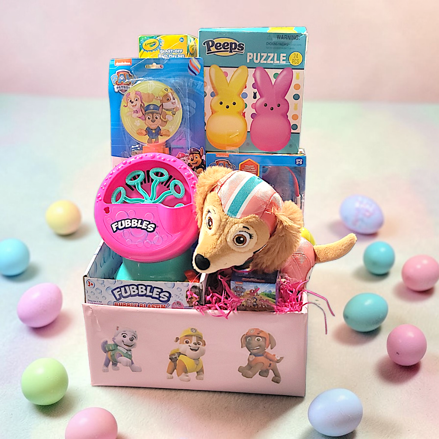 MEDIUM GIFT BOX FILLED WITH PAWPATROL SKYE ITEMS : PEEPS PUZZLE CRAYOLA BALST OFF BATH PLAY, PAW PATROL NIGHT LIGHT, PAW PATROL HEADPONES, FUBBLES BUBBLE MACHINE, SKYE PLUCH AND PAW PATROL MYSTERY GIFT WITH SNACKSMEDIUM GIFT BOX FILLED WITH PAWPATROL MARTIAL ITEMS : PAW PATROL 3PCS BATHROOM SET CRAYOLA BALST OFF BATHBUBBLE MACHINE , PAW PATROL HEADPONES,PAW PATROL TOOTH BRUSH AND PAPER YOYO MYSTERY GIFT WITH SNACKS